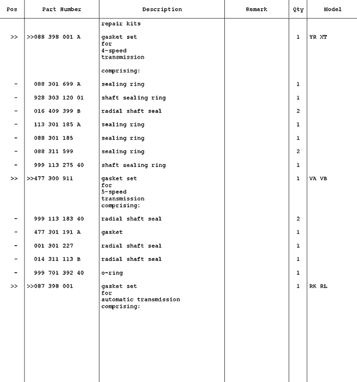 Porsche 924 Gears und Shafts 5 Speed |