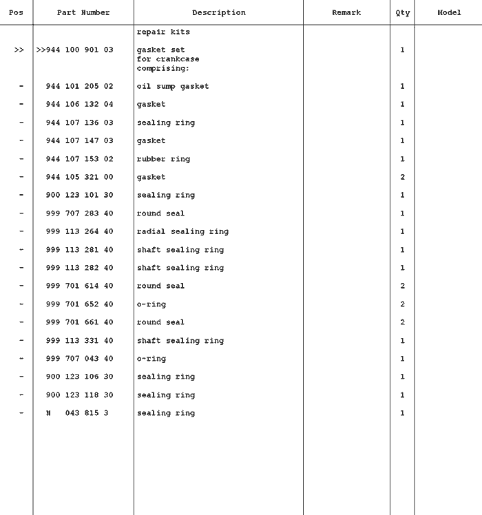 Porsche 924S Reperatur Kits Teile