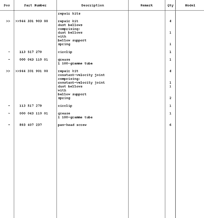 Explosionszeichnungen, Diagramme, Teilenummern für alle Teile des Porsche 924S