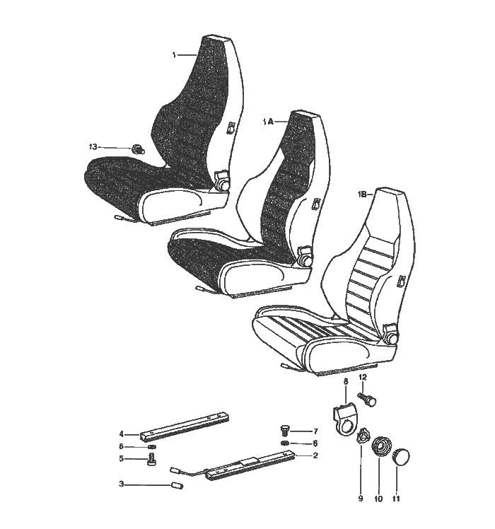 | Pos | __Part_Number__ | Description | Remark | Qty. | Model | | 1A | A 911 521 007 06 | sports seat leatherette/ centre part head rest porsche lettering cloth | Left | | 1 | | | | LR6 | black/black | | 84 | | | | | LR7 | brown/brown | | 84 | | | | | LR8 | grey-beige/grey-beige | | 84 | | | | | PX1 | black/black | | 85 | | | | | PX3 | brown/brown | | 85 | | | | | QD8 | grey-beige/grey-beige | | 85 | | | | 1A | A 911 521 007 07 | sports seat leatherette/ centre part head rest porsche lettering cloth | Left | | 1 | | | | LR6 | black/black | | 84 | | | | | LR7 | brown/brown | | 84 | | | | | LR8 | grey-beige/grey-beige | | 84 | | | | | PX1 | black/black | | 85 | | | | | PX3 | brown/brown | | 85 | | | | | QD8 | grey-beige/grey-beige | | 85 | | | | (1A) | A 911 521 008 06 | sports seat leatherette/ centre part head rest porsche lettering cloth | Right | | 1 | | | | LR6 | black/black | | 84 | | | | | LR7 | brown/brown | | 84 | | | | | LR8 | grey-beige/grey-beige | | 84 | | | | | PX1 | black/black | | 85 | | | | | PX3 | brown/brown | | 85 | | | | | QD8 | grey-beige/grey-beige | | 85 | | |