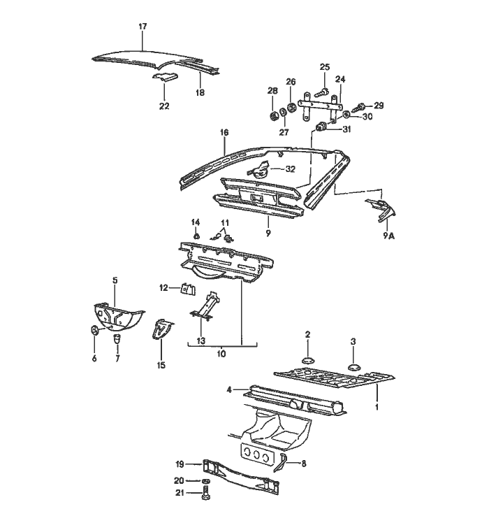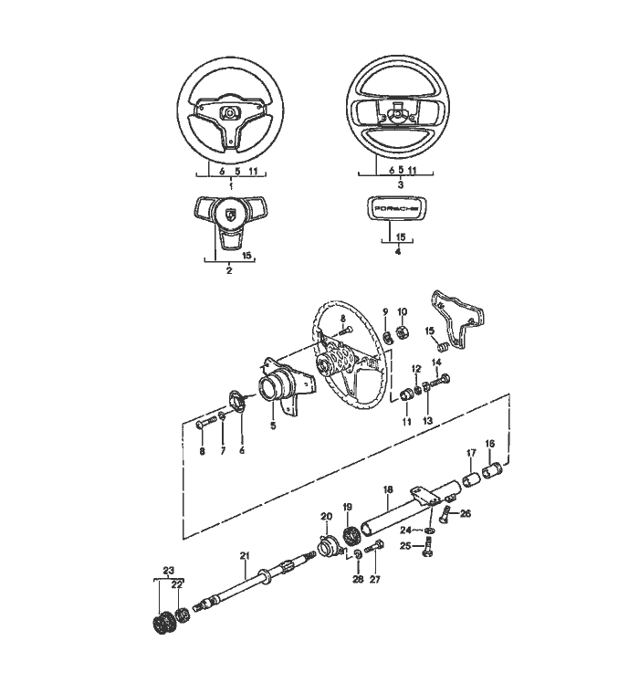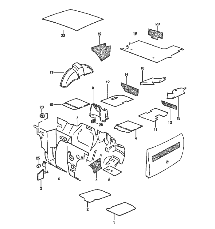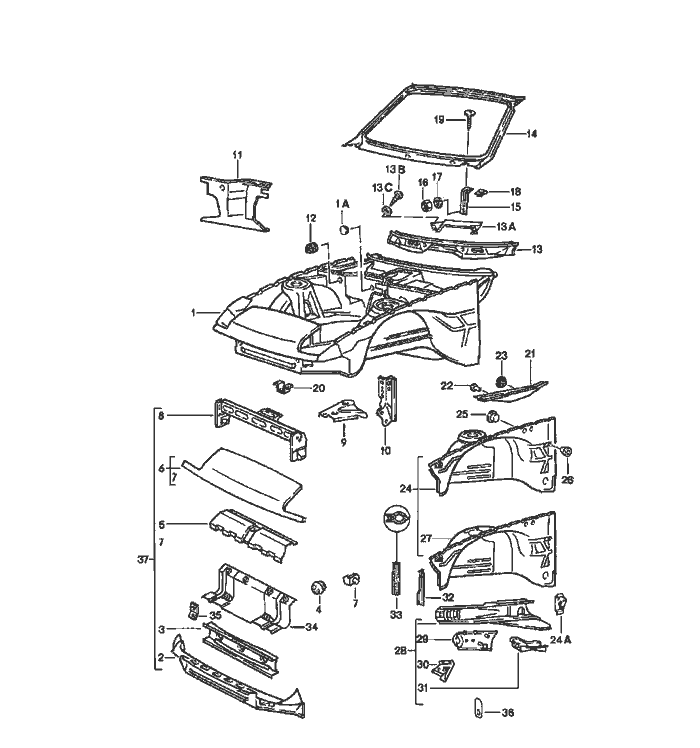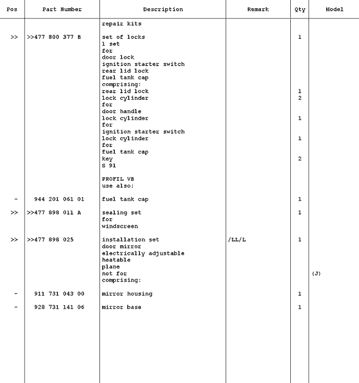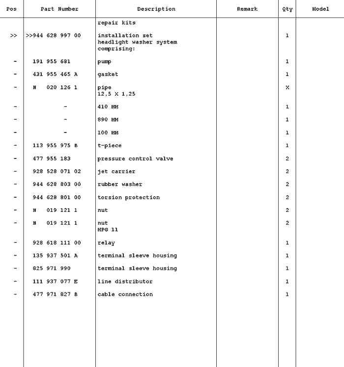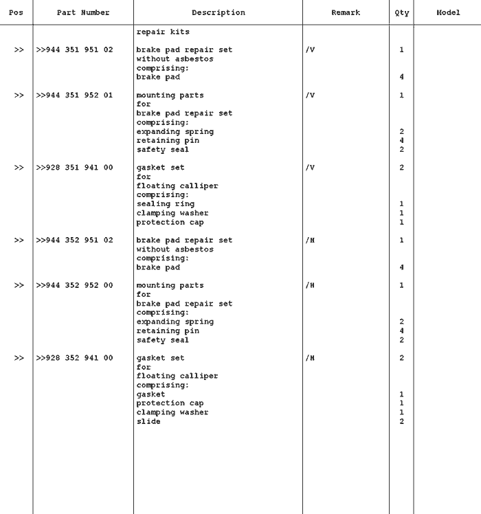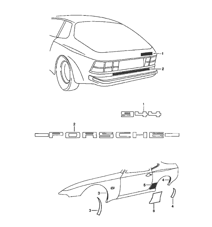Explosionszeichnungen, Diagramme, Teilenummern für alle Teile des Porsche 944