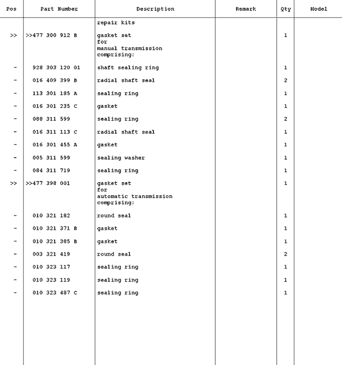 Porsche 944 Reperatur Kits Teile
