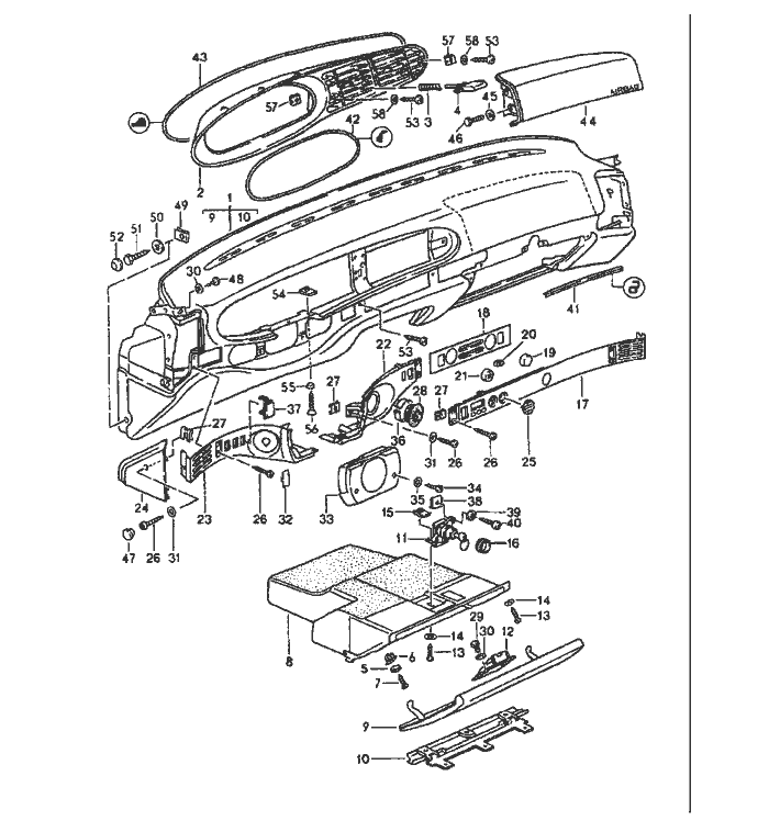 | Pos | __Part_Number__ | Description | Remark | Qty. | Model | | | | dashboard trim | | | | | | 1 | 944 552 085 00 | dashboard trim | Left Hand Drive | | 1 | | | | NW8 | black | | | | | | | NW9 | brown | | | | | | | NX1 | black/light grey | | | | | | | NX2 | burgundy | | -87 | | | | | UR3 | burgundy | | 88- | | | | (1) | 944 552 085 20 | dashboard trim | | 87 | 1 | M 562/563 | | | NW8 | black | | | | | | | NW9 | brown | | | | | | | NX1 | black/light grey | | | | | | | NX2 | burgundy | | -87 | | | | | UR3 | burgundy | | 88 | | | | 1 | 944 552 085 50 | dashboard trim leather | Left Hand Drive | 8686 | 1 | M 981 | | | QE6 | black | | | | | | | RB1 | brown | | | | | | | QE4 | black/light grey | | | | | | | NY4 | burgundy | | -87 | | | | | US7 | burgundy | | 88- | | | | | RB2 | can-can red/black | | | | | | | RB3 | black/pearl white | | | | | | | RB4 | black/champagne | | | | | | | RB5 | burgundy/pearl white | | | | | | | RB6 | cadbury brown/champagne | | | | | | | RB8 | cadbury brown/pearl white | | | | | | (1) | 944 552 085 51 | dashboard trim leather | | 8786 | 1 | M 981/562 |