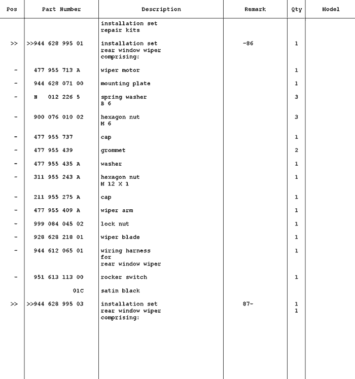 Porsche 944 Windscreen Wiper System |