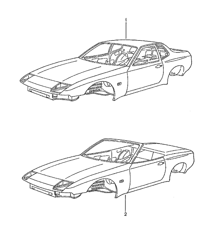 | | | body in white | | | | | | | prime coated sealed sprayed with filler with underbody protection | | | | | | | bodyshells can only only available from current model year available | | | | | (1) | 944 500 901 02 | body in white | | 1 | 944S2,M 650 | | (1) | 944 500 901 03 | body in white | | 1 | 944S2 | | (1) | 951 500 901 02 | body in white | | 1 | TURBO | | (1) | 951 500 901 03 | body in white | | 1 | TURBO,M 650 | | 2 | 941 500 901 11 | body in white | | 1 | CABRIO |
