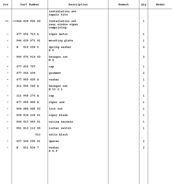 Porsche 944 Windscreen Wiper System |