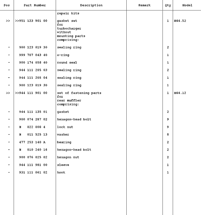Explosionszeichnungen, Diagramme, Teilenummern für alle Teile des Porsche 944