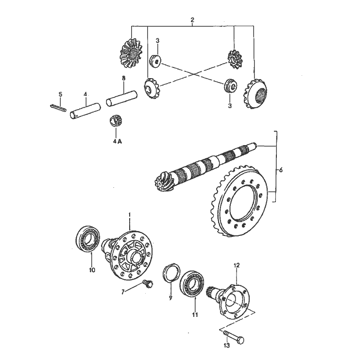 | | | manual transmission | | | G44.00 | | | | differential | | | | | 1 | 950 332 212 01 | differential housing | | 1 | | | 2 | 950 332 902 00 | gear set | | 1 | | | | | 1 set | | | | | 3 | 928 332 279 03 | threaded disc | | 2 | | | 4 | 928 332 207 07 | differential bolt | | 1 | | | 4A | 999 201 347 00 | needle cage | | 2 | | | | | 18 X 22 X 19,8 | | | | | 5 | 900 309 035 00 | roll pin | | 1 | | | | | 5 X 40 | | | | | 6 | 01E 409 143 E | ring gear and pinion shaft | | 1 | | | | | 34:9 | | | | | 7 | 928 332 276 05 | hexagon-head bolt | | 12 | | | 8 | 950 332 205 00 | spacer sleeve | | 1 | | | 9 | 950 332 268 00 | adjusting ring | | X | | | | | 0,25 MM | | | | | 9 | 950 332 268 01 | adjusting ring | | X | | | | | 1,6 MM | | | | | 9 | 950 332 268 02 | adjusting ring | | X | | | | | 1,7 MM | | | | | 9 | 996 332 266 56 | adjusting ring | | X | | | | | 1,8 MM | | | | | 9 | 950 332 268 04 | adjusting ring | | X | | | | | 1,9 MM | | | | | 9 | 950 332 268 05 | adjusting ring | | X | | | | | 2,0 MM | | | | | 9 | 950 332 268 06 | adjusting ring | | X | | | | | 2,1 MM | | | | | 9 | 950 332 268 07 | adjusting ring | | X | | | | | 2,2 MM | | | | | 9 | 950 332 268 08 | adjusting ring | | X | | | | | 2,3 MM | | | |