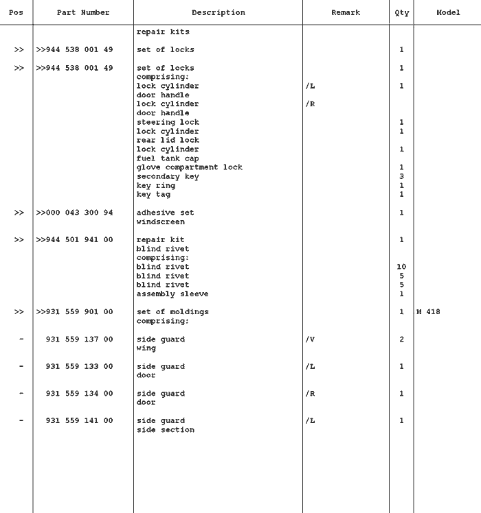Porsche 968 Reperatur Kits |