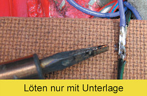 Isolieren Sie die Lötstellen und umwickeln Sie den Leitungsstrang wieder mit Gewebeschutz oder Isolierband.