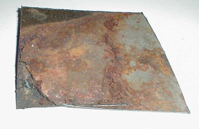 Innenseite des rausgetrennten Bleches, dort wo die Rostblasen waren